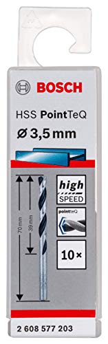 Bosch Accessories 2608577203 HSS PointTeQ (3,5 x 39 x 70 mm) - Set da 10 Pezzi di Punte Elicoidali per Trapano per Metallo, Acciaio, Fusione o Plastica, Grigio (Argento), Ø 3.5 mm
