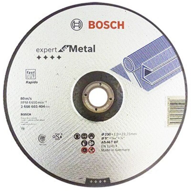 Dettagli tecnici Contenuto 1 pz. Dimensione, Ø 230 mm Dimensioni (Ø) 230 mm Idoneità del materiale Acciaio Spessore 1.90 Tipo prodotto Disco da taglio con centro depresso Ø foro 22.23 mm Disco da taglio piegato Expert for Metal - Rapido AS 46 T BF, 230 mm, 1,9 mm Il disco da taglio Expert for Metal combina un'enorme potenza di separazione in metallo con la massima sicurezza. Il disco in ossido di alluminio di alta qualità con legame in resina fenolica di alta qualità è adatto per le applicazioni più esigenti e produce buoni risultati. Inoltre, il tessuto in fibra di vetro di precisione garantisce un'elevata stabilità e sicurezza durante il taglio. Utilizzare questo disco per tagliare il metallo. Per smerigliatrice angolare. I dischi da taglio Bosch soddisfano i più elevati requisiti di sicurezza come EN 12413, FEPA e osa. Specifiche: AS 46 T BF, diametro mm: 230, diametro foro mm: 22,23, spessore mm: 1,9 Testo tradotto automaticamente Incluso nella consegna null Requisiti di sistema