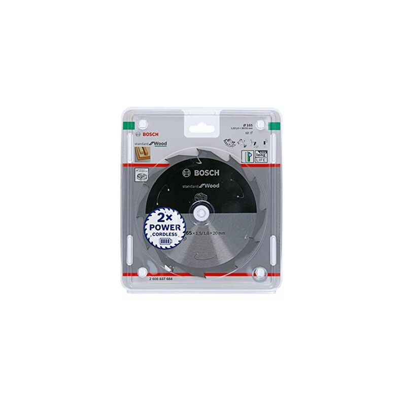 Bosch Accessories Lama Per Sega Circolare Standard For Wood (Legno, 165 x 20 x 1.5 mm, 12 Denti, Accessorio Per Sega Circolare A Batteria) 165 mmStyle: 20 mm;