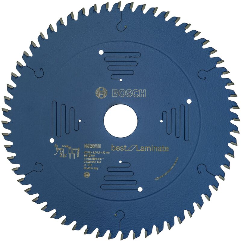 La lama per sega circolare Best for Laminate presenta una durata elevata nel taglio di tutti i tipi di pavimenti in laminato. Il rivestimento Proteqtion della lama previene la corrosione e consente tagli affidabili riducendo l'attrito. Inoltre, questo rivestimento impedisce il surriscaldamento della lama e la protegge dalla corrosione. Le sue prestazioni e la qualità elevate sono inoltre rinforzate dagli denti Microteq realizzati internamente da Bosch e composti da durevoli grane in metallo duro Inoltre, la lama è progettata appositamente con intagli anti-vibrazioni che riducono le vibrazioni e il rumore in modo significativo per agevolare i tagli di precisione. La lama è compatibile con troncatrici e troncatrici radiali.