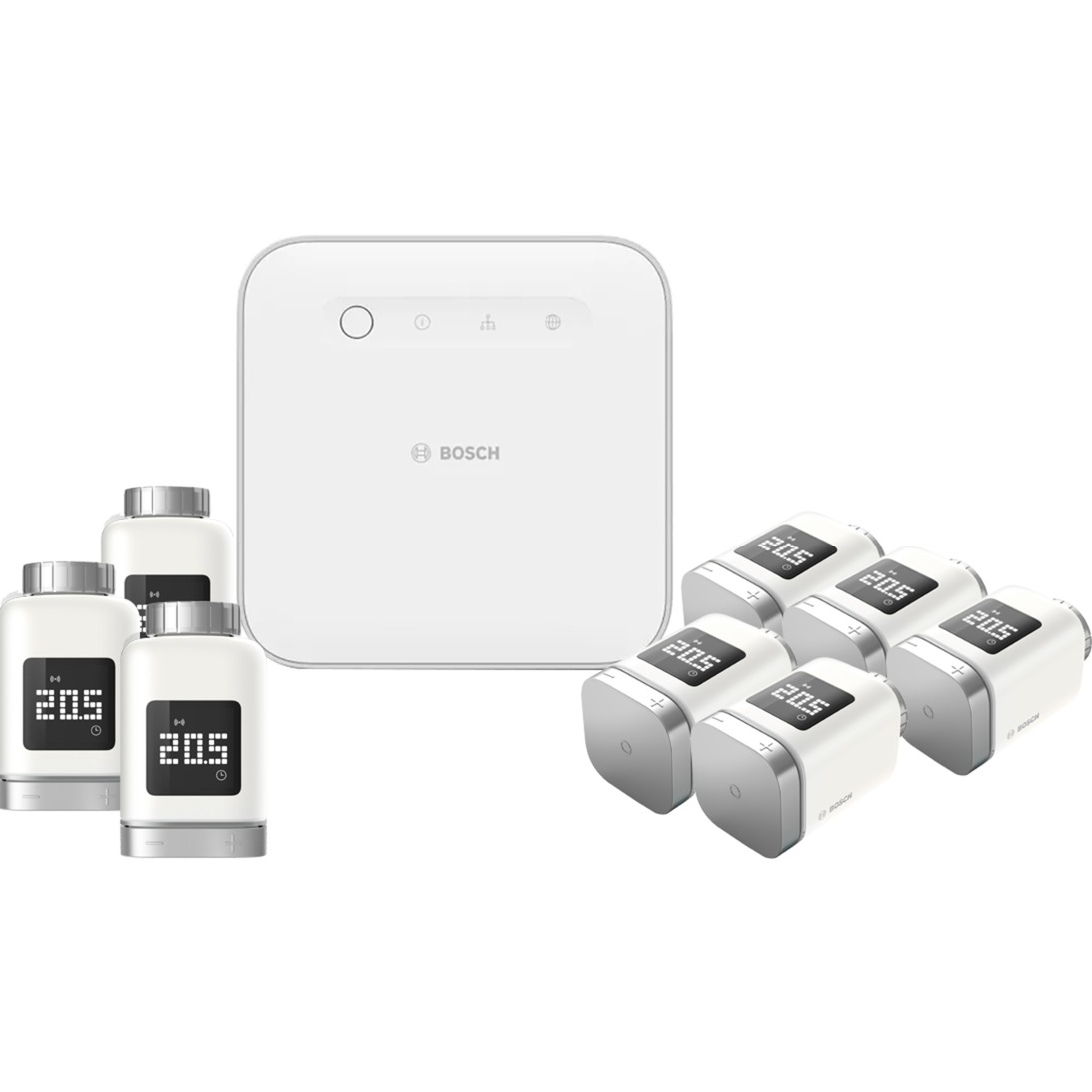 Il pacchetto d''azione Bosch "Smart Heating VI" è l''ingresso in un sistema di controllo del riscaldamento intelligente e aiuta a risparmiare energia. Il set è composto dal Bosch Smart Home Controller II e da otto termostati intelligenti per radiatori. Bosch Smart Home Controller II funge da interfaccia tra i dispositivi (Bosch Smart Home e dispositivi partner) e l''app Bosch Smart Home, con cui controlli la tua Smart Home. Grazie al controller, la casa intelligente può essere facilmente controllata tramite app tramite assistenti vocali, automazioni, scenari o servizi preconfigurati. Per impostazione predefinita, Bosch Smart Home Controller II memorizza tutti i dati localmente e consente anche il pieno controllo se devono essere utilizzati servizi partner integrati tramite cloud. Lo Smart Home Controller II si aggiorna a intervalli regolari tramite aggiornamenti software automatici gratuiti. Con il termostato intelligente, è possibile determinare una temperatura di benessere individuale per ogni stanza di mezzo grado e avere una panoramica dei valori di temperatura attuali nell''app in ogni momento. Il termostato intelligente per radiatori II semplifica il risparmio energetico: grazie a programmi orari e servizi intelligenti come la "ventilazione sostenibile", si riscalda solo quanto necessario per il massimo comfort. Sia con Alexa che con Google Assistant, il termostato può essere impostato con precisione vocale.