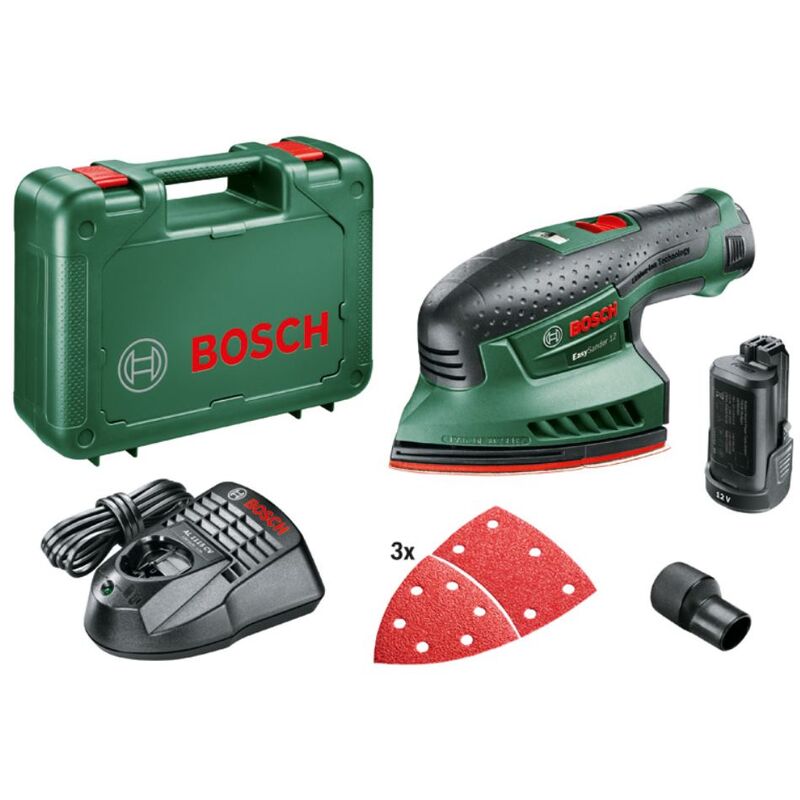 Batteria Multi-Grinder Easylander 12. Per una maggiore rimozione sulla chiamata. PowerAutomatic - Attraverso la pressione, il tuttofare aumenta automaticamente le sue prestazioni di rimozione. Macinazione multi-rettifica compatta e pratica e lucidatura anche in luoghi difficili da raggiungere e piccole superfici. Potente batteria del cambio di litio e caricabatterie da 1 ora. Chip Syneon - energia controllata intelligente per ogni progetto. Nessun effetto di memoria. Nessuna auto-scarica - sempre pronto per l'uso grazie alla tecnologia agli ioni di litio. Particolarmente elevata longevità del pacco batteria agli ioni di litio modificabile della protezione delle cellule elettroniche Bosch (ECP). Chiusura in velcro per il cambio di lama di rettifica rapida e confortevole. Piastra di levigatura a due parti: per l'utilizzo ottimale della carta vetrata, la punta delicato della carta vetrata e la piastra abrasiva può essere sostituita e ruotata senza sforzo. Collegamento per estrazione