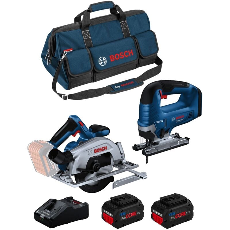 BOSCH Kit BK2023BAG Sega Circolare BOSCH GKS 18V-57-2 Professional - La compatta Sega Circolare a batteria GKS 18V 57-2 Professional, con lama sul lato destro, offre prestazioni eccezionali, grazie al potente motore brushless - La lama da 165 mm consente una profondità di taglio di 57 mm nei tagli a 90° ed è ottimizzata per il funzionamento a batteria, per un rapido avanzamento del taglio ed un'autonomia massimizzata della batteria - La dotazione comprende un attacco per aspirazione della polvere ruotabile su 360°, compatibile con il Click & Clean System - Ciò coadiuva un'aspirazione efficiente e protegge ancora meglio la salute dell'utilizzatore - Concepita per tagliare su legno e legno composito - Dotato di freno rapido, funzione soffiatrucioli, LED integrato, impugnatura frontale per un controllo ideale e blocco dell'alberino - Inoltre, consente di fissare un gancio Seghetto Alternativo BOSCH GST 18V-125 B Professional - La struttura robusta e il potente motore brushless del GST