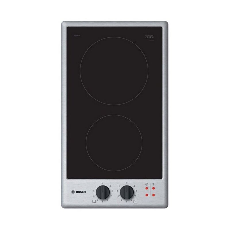 Il domino in vetroceramica Bosch PKE345CA2E Serie 2 semplifica la cottura e la pulizia. Pulsanti laterali: per una facile regolazione della potenza desiderata. Tipologia: Piano cottura Domino (ca. 30 cm). Energia elettrica. Piano cottura in ceramica. Installazione/Installazione: Integrato. Dimensioni del prodotto (AxLxP mm): 42,5 x 288 x 505. Dimensioni della nicchia richiesta per l'installazione (AxLxP mm): 42,5 x 268 x (490 490). Spessore minimo del piano di lavoro: 30 mm. Potenza di connessione: 2,9 kW. Cavo di collegamento: 2 m con spina. Plug and play, non è necessario l'intervento dell'elettricista per l'installazione. Indipendente / Incasso: Incasso. Fonte energetica: elettricità. Numero di piastre utilizzabili contemporaneamente: 2. Nicchia da incasso: 42,5 x 268 x 490 mm. Larghezza del dispositivo: 288 mm. Dimensioni del dispositivo A x L x P: 42,5 x 288 x 505 mm. Dimensioni prodotto imballato: 143 x 361 x 578 mm. Indicatore di calore residuo: Indipendente. Posizione del