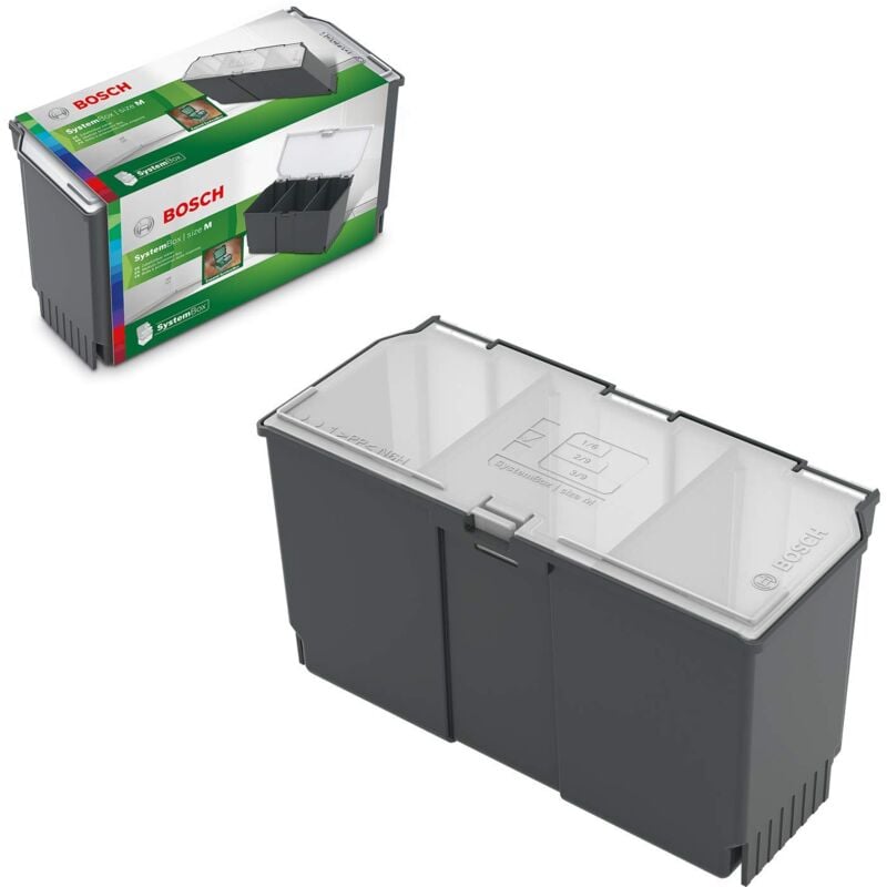 Bosch scatola accessori La scatola accessori “media (2/9) è ottima per SystemBox | taglia M e si aggancia saldamente in posizione. Maggiore flessibilità e adattamento alle singole esigenze grazie a due scatole accessori di dimensioni diverse (piccola, media). Contenuto della confezione: La scatola accessori “media (2/9)