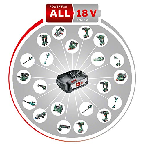 Sistema Power for all da 18 V: una batteria 18 V e un caricatore compatibili con tutti i prodotti della linea Bosch Home Garden da 18 Volt