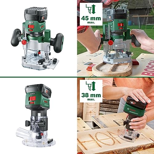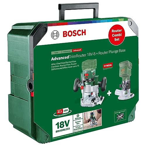 Bosch Rifilatore/fresatrice a immersione a batteria 2in1, Set combinato di rifilatore AdvancedTrimRouter 18V-8, incluse 2 basi di fresatura e accessori, sistema a 18V