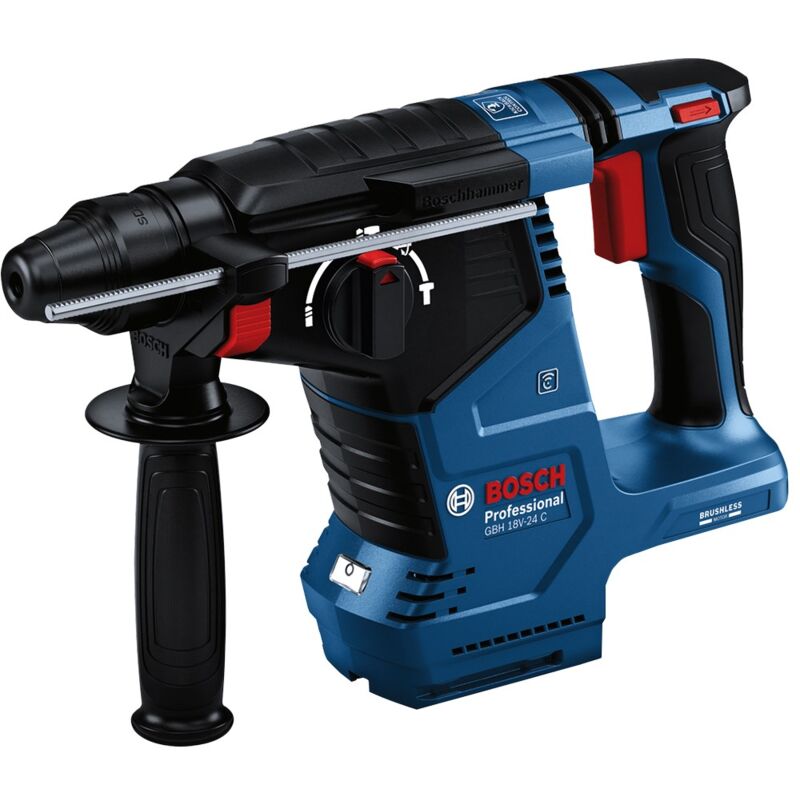 Martello Perforatore BOSCH GBH 18V-24 C Professional - Il GBH 18V-24 C Professional è un Martello Perforatore cordless multiuso SDS plus di Bosch, perfetto per l'uso quotidiano - È dotato di un motore brushless senza spazzole e include KickBack Control e Vibration Control per aumentare la protezione della salute dell'utente - Il suo schermo HMI presenta lo stato della batteria in modo pratico e altre importanti notifiche per l'utente - Il modulo di connettività Bluetooth integrato consente una connessione rapida e semplice all'app Bosch Toolbox per impostazioni personali rapide - È compatibile con il sistema di estrazione autonomo Bosch GDE 18V-16 Professional che si integra nel martello con un clic - Il GBH 18V-24 C Professional è progettato per forare e scalpellare legno, metallo, cemento e muratura - Compatibile con tutte le batterie e i caricabatterie del sistema Bosch Professional da 18 V - Include anche velocità costante, protezione elettronica del motore (EMP)