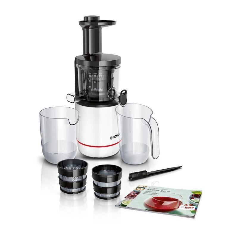 1500 W - 1 marce + RM - estrazione delicato e silenzioso 55 giri / min - Filtro fine per il succo chiaro - filtro media spesso succo - Libro di 30 ricette e mobile - Nessun blocco - BPA garanzia - facile pulizia - sistema di sicurezza - Include brocca caraffa