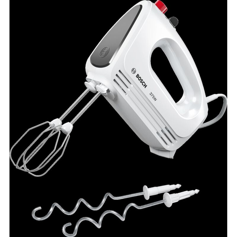 Miscelatore elettrico BOSCH MFQ22100. Leggero ed efficiente grazie al suo motore DC, questo mixer permette cotture senza fatica e garantisce risultati perfetti!4 velocità + Pulse per adattarsi alla consistenza di diverse preparazioni con regolazione elettronica, 2 ganci impastatori e 2 fruste in acciaio inox. Tipo di prodotto: frullatore a immersione. Impostazioni di velocità: 4 preset. Colore: bianco/grigio. Potenza elettrica: 375 Watt. Alimentazione: 220 - 240 V / 50/60 Hz. Tipo di spina: europea. Dimensioni (LxPxA): 7,3 cm x 20 cm x 15,3 cm. Peso: 0,9 kg.