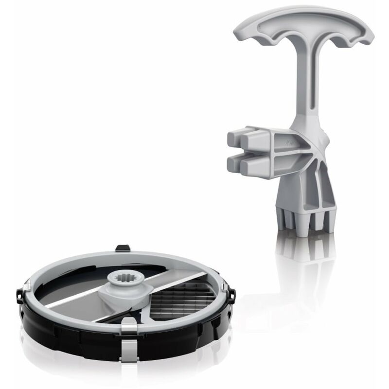 Comodo e rapido cubetti di carni, patate, verdure e frutta in uniformemente grande (0,9 cm x 0,9 cm). Particolarmente pratico per grandi volumi - ad esempio famiglia fisso. Griglia detergente incluso Adatto per il Optimum sminuzzatore