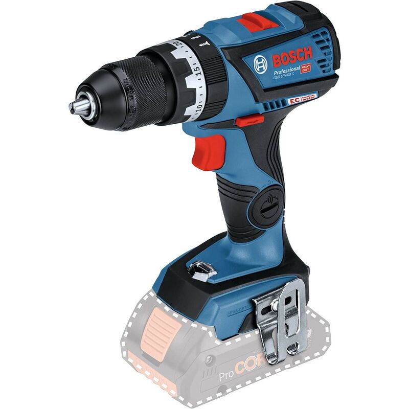 Bosch Professional 06019G2102 GSB 18V-60 C trapano avvitatore a percussione a batteria, senza batteria e caricabatterie Il compatto trapano avvitatore a batteria GSB 18V-60 C con motore senza carbone e funzione di percussione offre il miglior rapporto dimensioni/prestazioni della classe 18 V di Bosch. Ha una combinazione ideale di prestazioni e peso, con una coppia di 60 Nm (avvitamento duro) e una testa lunga solo 174 mm. Il KickBack Control aumenta la protezione dell'utente per un lavoro sicuro e un controllo perfetto, mentre la frizione di precisione assiste l'utente e rende il lavoro più piacevole. Il trapano avvitatore è inoltre dotato di connettività Bluetooth, che consente di collegarlo direttamente a uno smartphone per il controllo a distanza. Dotato di funzione di percussione, questo strumento è progettato per forare il legno fino a 38 mm di diametro, l'acciaio fino a 13 mm di diametro e la muratura fino a 10 mm di diametro. Può essere utilizzato anche per avvitare fino a 10