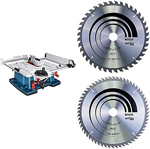 Bosch Professional 0601B30400 Banco Sega GTS 10 XC, 254 mm, Ø Foro Lama: 30 mm, 2100 W, 230 V + Lama per sega, 254 x 30 x 2, 8 mm, 40 denti + Lama Troncatrice Optiline, 254X30, 60 D, Grigio, 254.0