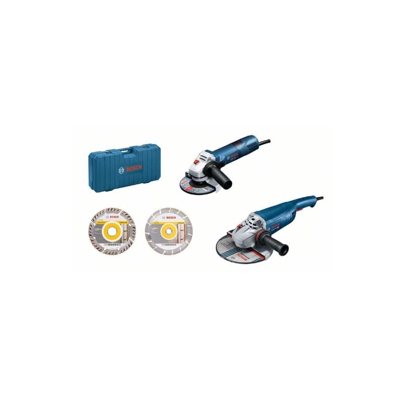GWS 22-230 J: prestazioni elevate e design robusto. Con protezione soft start e riavvio. GWS 22-230 J: Veloce avance per la rimozione del materiale e risultati di taglio impressionanti de grazie al motore de 2200 W. GWS 7-125: mini smerigliatrice professionale con una minima de zona di presa de solo 176 mm per ottimale ergonomia e minore affaticamento. GWS 7-125: il motore compatto de 720 watt offre il miglior rapporto potenza/manipolazione per un lavoro continuo. Include: GWS 22-230 J GWS 7-125, lama de taglio de diamante de 230 mm, lama de taglio de diamante de 125 mm, custodia.