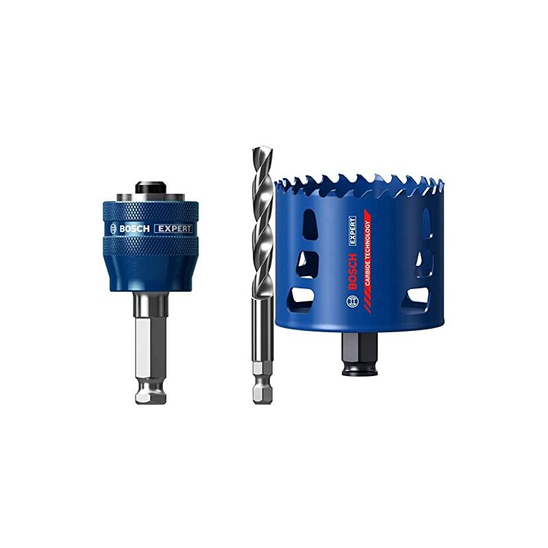 Bosch Professional 1x Adattatori di Seghe a Tazza Expert Power Change Plus (Ø 7,15 mm) + 1x Seghe a Tazza Expert Tough Material (per Legno con Metallo, Ø 80 mm, Accessorio Trapano a Percussione)