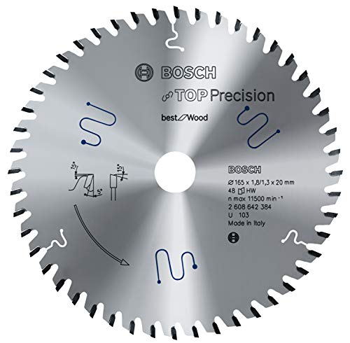Bosch Professional Lama per sega circolare Top Precision Best for Wood, per legno, 165 x 20 x 1, 8 mm, 48 denti, accessorio per sega circolare