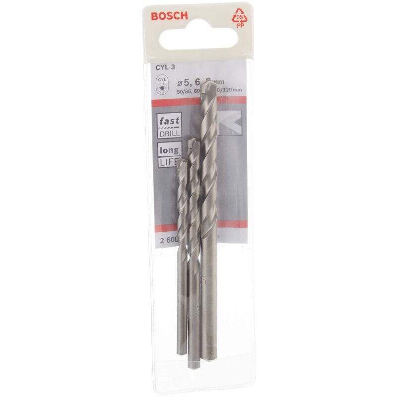 Bosch Professional 3 pezzi CYL-3 punte da calcestruzzo Set (per calcestruzzo, Ø 5/6/8 mm, accessorio perforatrice a percussione) Ø 5/6/8 mmSize: Ø 5/6/8 mm;