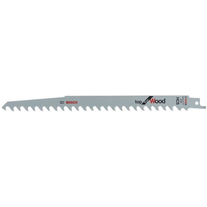 Utilizzabile con seghe universali con codolo universale da 1/2. La lama per sega universale S 1542 K Top for Wood consente tagli potenti e veloci nel legno. L'ampio passo dei denti (8.5 mm) e gli ampi incavi eliminano velocemente il materiale, consentendo un taglio rapido. Inoltre, l'affilata dentatura stradata rettificata consente un taglio efficiente per una lavorazione veloce e potente, mentre il materiale spesso (1,5 mm) fornisce la ottima stabilità per tagli energici. Realizzata in HCS (acciaio al carbonio), la lama per sega universale è indicata per il taglio di legno dolce, legno da costruzione e tutti i materiali legnosi non abrasivi nelle applicazioni edili. Ha una grande lunghezza di 240 mm che consente una capacità di taglio ottima di 190 mm.