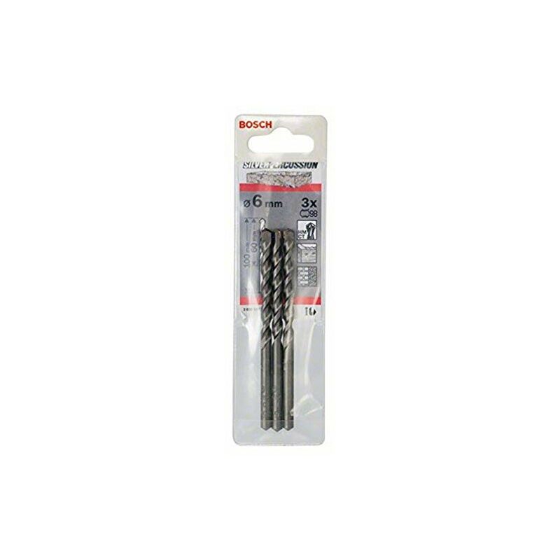 Bosch Professional 3x punte da calcestruzzo CYL-3 (per calcestruzzo, Ø 6 x 60 x 100 mm, accessorio perforatrice a percussione) Ø 6 x 60 x 100 mmSize: Ø 6 x 60 x 100 mm;