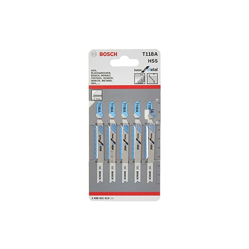 Bosch Professional 5x Lame per seghetto alternativo T 218 A Basic for Metal (per Lamiere di acciaio, accessorio Seghetto alternativo) 1 - 3 mmSize: 1 - 3 mm;