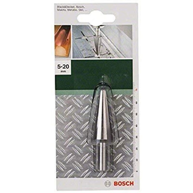 Punta allargafori a forma di cono con un diametro in costante aumento. Contrariamente all'elica a spirale della punta convenzionale, la lamiera viene continuamente alesata dal trapano in lamiera, in modo da evitare blocchi improvvisi. Realizzato in cromo vanadio.