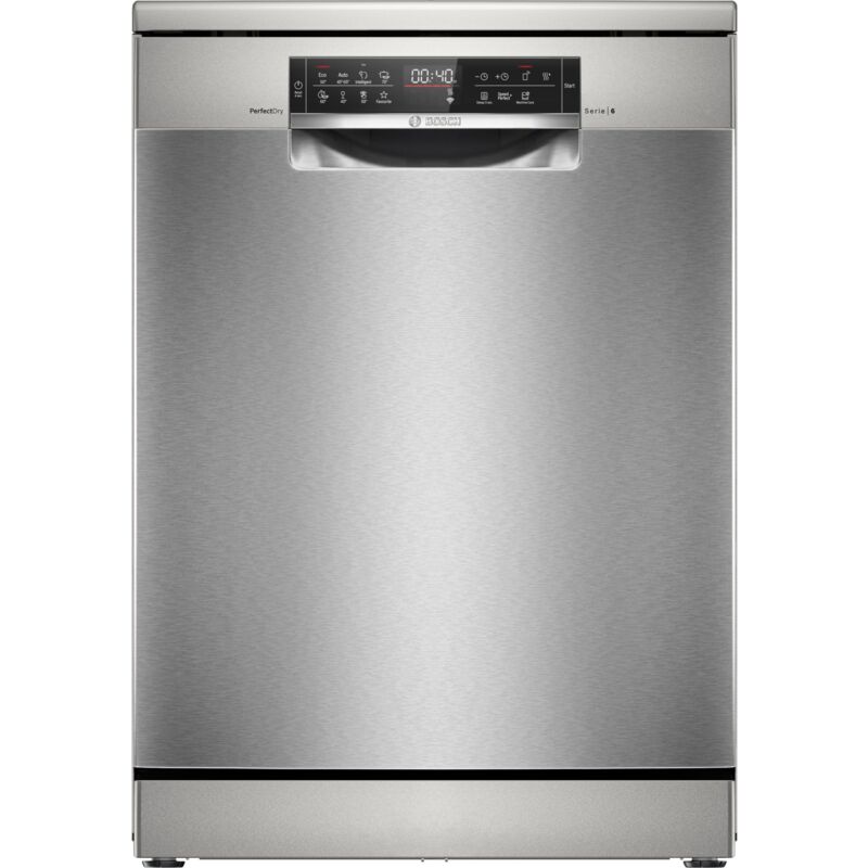 Bosch Serie 6 SMS6ZCI16E Lavastoviglie da libera installazione 60 cm Acciaio Classe B. Posizionamento dell'apparecchio: Libera installazione, Dimensione: Dimensione massima (60 cm), Colore della porta: Acciaio inox. Numero di coperti: 14 coperti, Classe emissione rumore: B, Emissione acustica: 40 dB. Regolazione piedini: 2 cm, Applicazioni per il controllo supportate: Bosch Home Connect. Classe efficienza energetica: B, Consumo di acqua per ciclo: 9 L, Consumo energetico per 100 cicli: 65 kWh. Larghezza: 600 mm, Profondità: 600 mm, Altezza: 845 mm