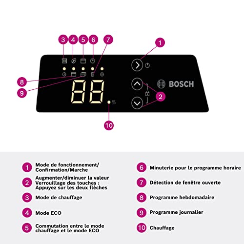 Bosch Thermotechnik HC 4000-10 Per Circa m² con 1000 W con regolatore elettronico, Display LED, Programma settimanale, 5 Anni di Garanzia del Prodotto, Bianco, für ca. 10 m2