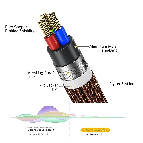1. Qualità audio fantastica: I connettori placcati in oro e il rame privo di ossigeno del cavo rca jack garantiscono la massima conduttività e durata, assicurando una trasmissione audio stereo ottimale. Questo cavo RCA a Y presenta una perdita di suono minima, interferenze minime e un audio complessivamente nitido e di alta qualità.