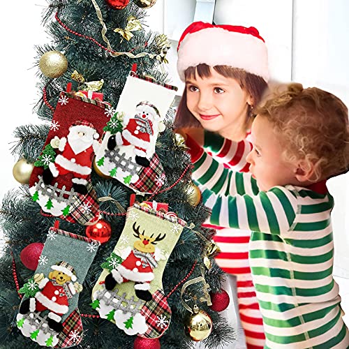 Boseago 4 Pezzi Calze Natalizie da Appendere,Calze Camino Natale in Lino Decorazione Calza Natalizia per Camino Albero di Natale,Calza di Natale Sacchetti Regalo (C)