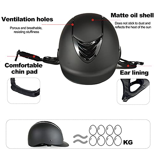 BOSERMEM Casco da Equitazione Regolabile, Equitazione Cappello Star Model Casco da Bambino, Casco Robusto Unisex Adulto con Sistema di Ventilazione(Oro Nero, M=54-58cm)