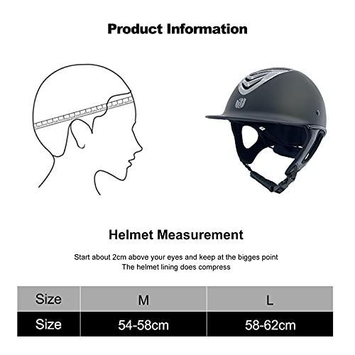 BOSERMEM Casco da Equitazione Regolabile, Equitazione Cappello Star Model Casco da Bambino, Casco Robusto Unisex Adulto con Sistema di Ventilazione(Argento Nero, L=58-62cm)