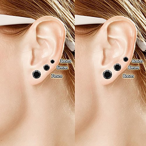 Boshi - Orecchini a perno da uomo, in argento 925 e cristallo Swarovski nero;