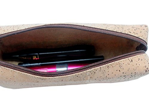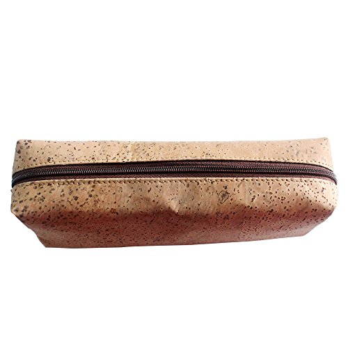 Boshiho Astuccio per penne, astuccio in sughero, per cosmetici, cosmetici, cosmetici, per cancelleria, con cerniera, portapenne, borsa ecologica, regalo vegano (marrone chiaro)
