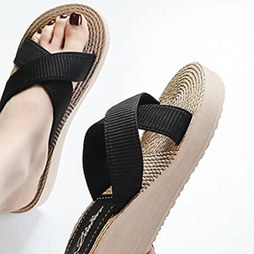 Scarpe da donna con plateau, tacco alto, vintage, con tacco a blocco, sandali da donna con tacco a blocco, con strass, cinturino a croce piatto, sandali da spiaggia, sandali da spiaggia, sandali romani, sandali estivi