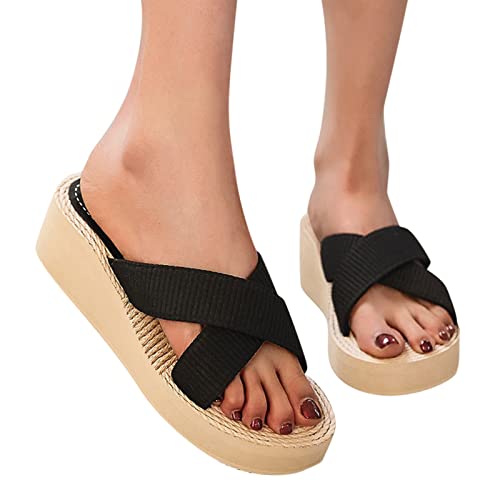 Boshivw Sandali da donna con tacco, sandali con zeppa, scarpe con zeppa, comode, per il tempo libero, estivi, casual, estivi, sandali da spiaggia, sandali neri donna eleganti, 44