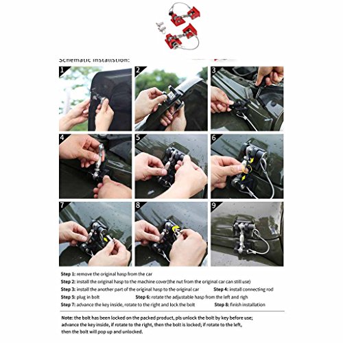 ➵Questo kit di blocco del fermo cofano si adatta per Jeep Wrangler JK 2007-2017 (modelli Non-Fit 10 ° Anniversario Rubicon)