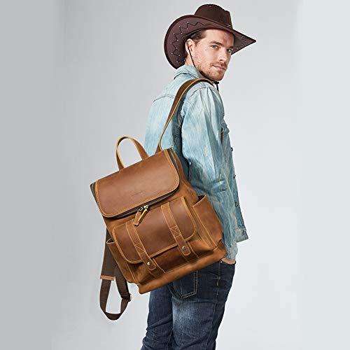 BOSTANTEN Zaino in pelle per gli uomini 15.6 "Zaino per laptop Vintage Borsa da viaggio per ufficio Borsa a tracolla per scuola di grande capacità, B-marrone, medium 14.17(L) x 7.87(W) x 15.75(H) inch, Computer portatile