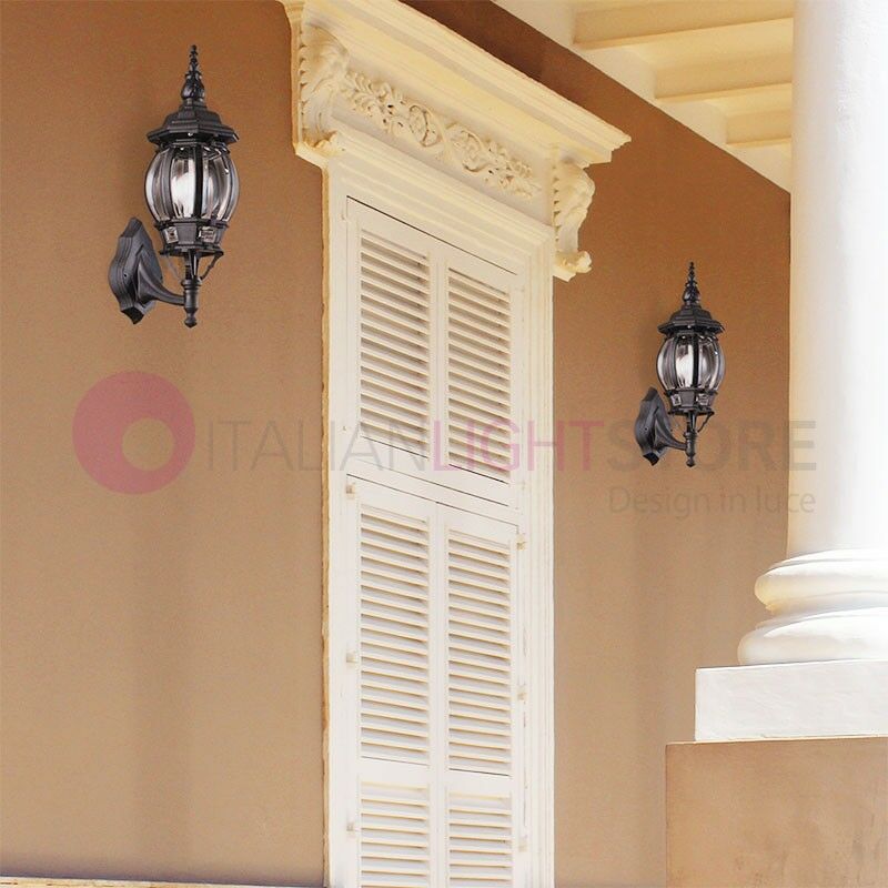 Lampada da parete classica per esterni, realizzata in materiale composito Duralighting, colore nero. Lanterna a parete per esterni in materiale DURALIGHTING, ideale per illuminare spazi aperti, porticati, balconi, giardini e verande. Dimensioni: altezza50 cm.;