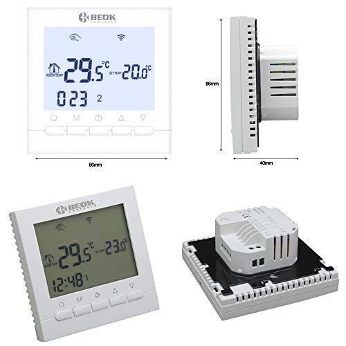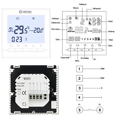 Beok BOT-313, termostato Wi-Fi per caldaia a gas, regolatore della temperatura ambientale programmabile, con schermo LCD e app gratuita! Controllo remoto online tramite smartphone, AC220V 3A, bianco, 220.00 voltsV