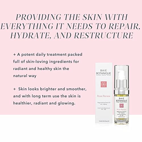 Baie Botanique Professionale Olio Viso Anti-Invecchiamento 15ml - Cinorrodo, Camellia, Borragine, Lampone, Enagra, Olio di Abissino e Amla - 100% Naturale, 90% Organico