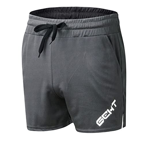 BOTCAM Pantaloncini corti da uomo, in tessuto a rete traspirante, per fitness, ad asciugatura rapida, con elastico, per il tempo libero, da corsa, da jogging, da uomo, grigio., L