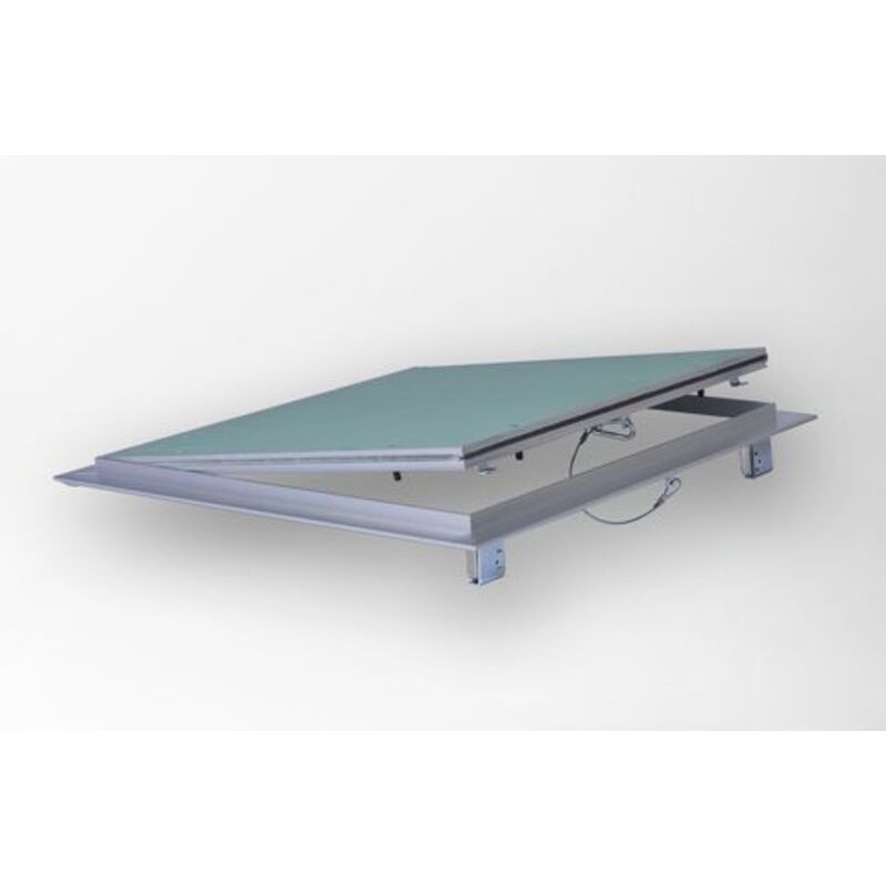 Linea professionale di botole in alluminio con sportelli in cartongesso Akifix©.Lastra 13 mm. Telaio robusto che impedisce qualsiasi flessione. Chiusura ermetica della botola grazie alla guarnizione antipolvere. Botola applicabile a soffitto, colore alluminio naturale.