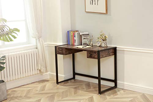 BOTONE Pratica scrivania, Tavolo per Computer con Due cassetti scorrevoli dall'aspetto Rustico in Legno e Robusta Struttura in Metallo Nero;