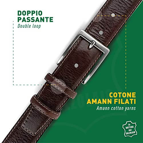 La Bottega del Calzolaio Cintura uomo in pelle marrone scuro classica artigianale made in Italy 3,5 cm (115 cm (46/48-48/50 EU))