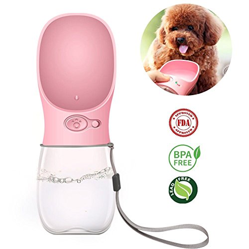Bottiglia D'acqua per Cane per Camminare Pet Acqua Bottiglie Automatico Distributore All'aperto, Portatile Cane Gatto Potabile Tazza, Gattino Cucciolo Viaggio Acqua Ciotola 350ML BPA Gratuito (Rosa)