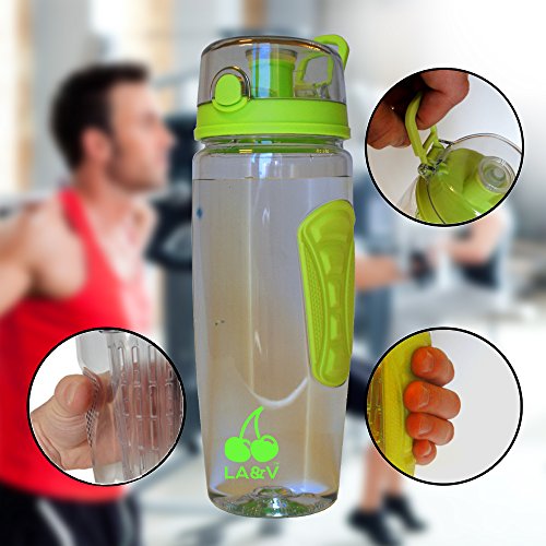 LA&V bottiglia d'acqua infusore frutta 1 litro con isolamento termico e anticondensa copertura - sportello a scatto - Chiusura a scatto perfetta tenuta - impugnature ergonomiche - Tritan libero da BPA - Fruit Infuser Water Bottle BPA free