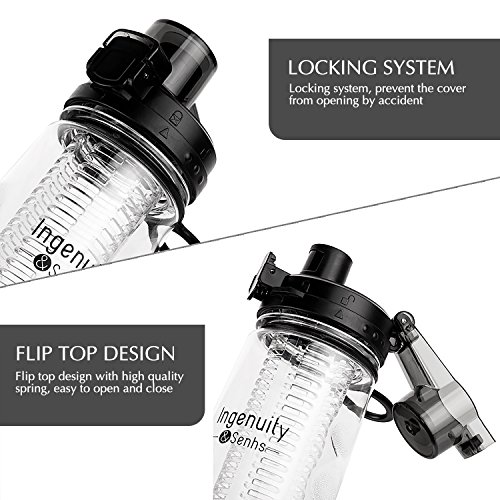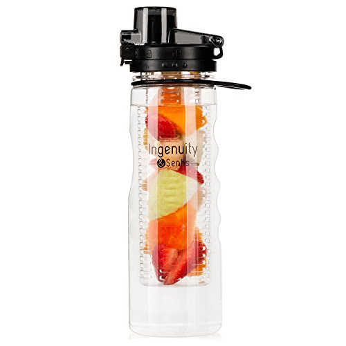 Bottiglia Acqua con Infusore Bottiglia Sport da 750ML (25OZ) con Doppio Filtro per Frutta, Design con Tappo Ermetico, Antiscivolo Bottiglia d'Acqua in Tritan Senza BPA da Ingenuity & Senhs (1 Pack)