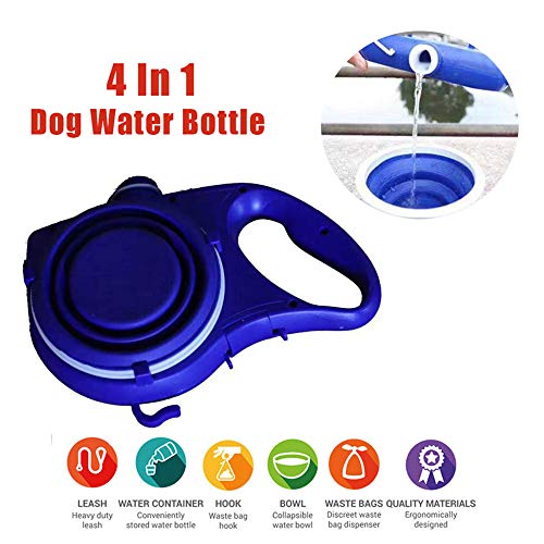 · 4 in 1 multi-funzione: Bottiglia di acqua domestico con la corda ritrattabile automatico della trazione, ciotola in silicone pieghevole, buco sacco della spazzatura dedicato, e gancio intimamente progettato per la conservazione sacchi della spazzatura abbiamo tutto ti preoccupi quando si va fuori ..