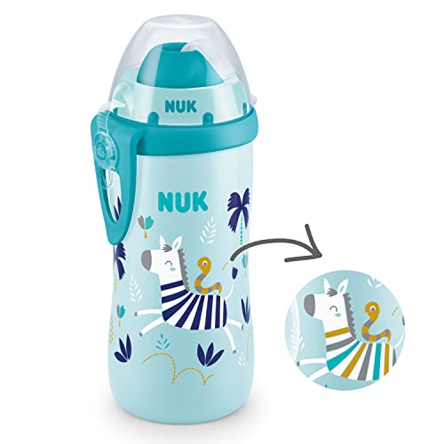 NUK Bottiglia di apprendimento Flexi Cup con cannuccia morbida | effetto camaleonte | 300 ml | 12+ mesi | a tenuta stagna | senza BPA | zebra (blu) | 1 pezzo (1 confezione)