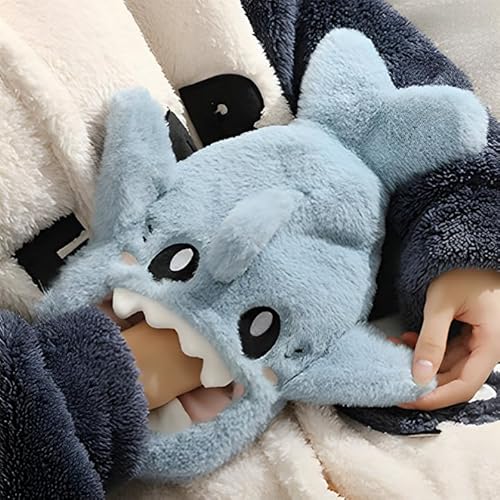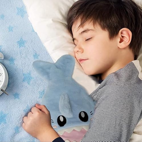 Bottiglia calda con rivestimento soffice, a prova di perdite, grande sacchetto per acqua calda, 1 l, adatta per bambini, studenti, vacanze e regali di compleanno (squalo blu 1 l)